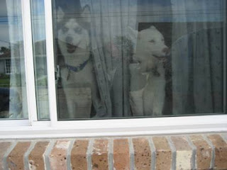 Well, we have to be separated for the week. The vet actually thinks Bella is gonna lay still and be confined to her crate? Oh but no. I have the doggy room with my sofa and window and Bella is in the kitchen. And she will not stay still. So we will just have to visit at the gate until the weekend. Let's see who lasts longer with this set up, us or mom. Husky Hugs to all. MayaMarie